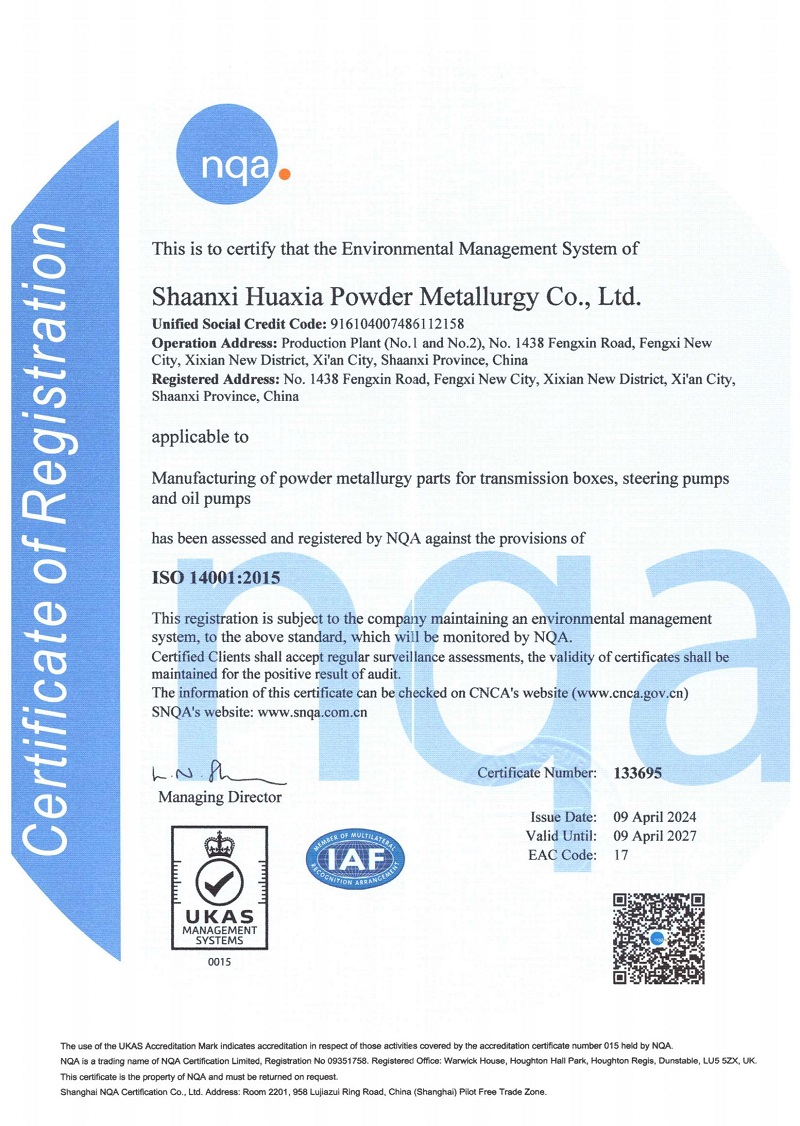 華夏公司繼2014年通過(guò)ISO/TS16949:2009汽車(chē)行業(yè)質(zhì)量管理體系認(rèn)證,2021年通過(guò)GB/T29490-2013知識(shí)產(chǎn)權(quán)管理體系認(rèn)證,2023年通過(guò)GB/T 19022-2003/ISO 10012:2003測(cè)量管理體系以來(lái),本次環(huán)境管理體系認(rèn)證的通過(guò),進(jìn)一步證明了公司的實(shí)力,更是對(duì)于公司不斷做大做強(qiáng)的一種鞭策。